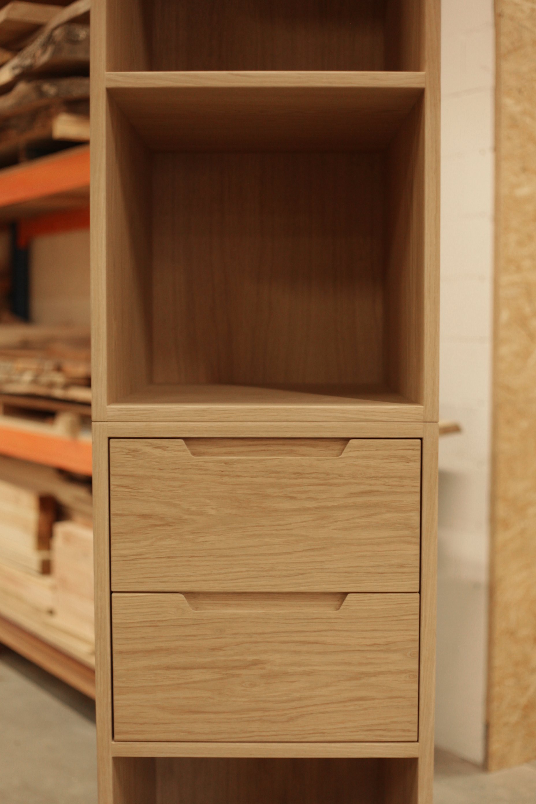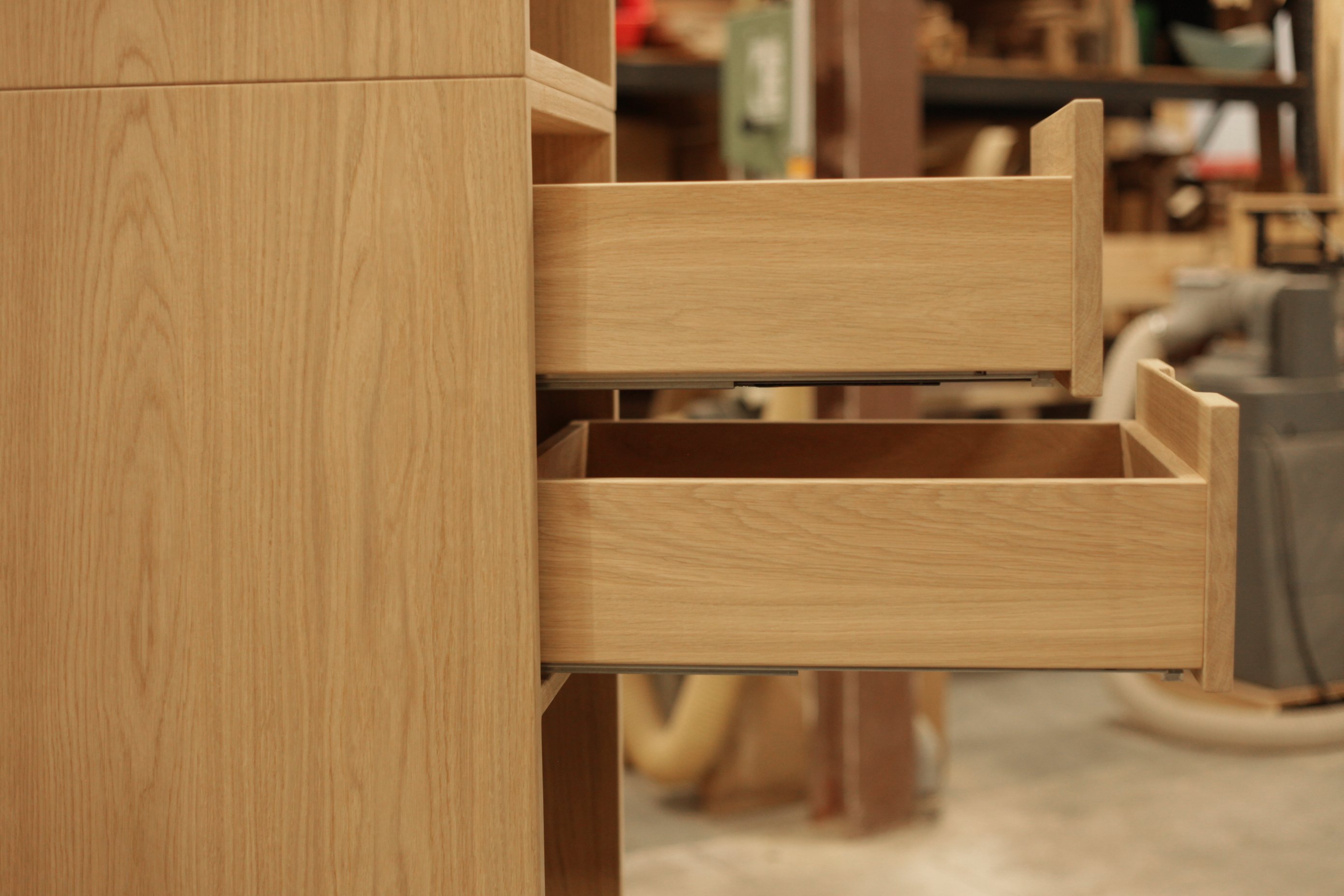 Deze kledingkasten zijn voor dezelfde woning gemaakt als de garderobekast van Amsterdamse plataan. De kasten zijn geheel van massief eiken gemaakt en bestaan beide uit twee delen die op elkaar staan - hierbij loopt de tekening van het hout mooi door. De lades zijn uitgevoerd met een soft close systeem, zodat deze rustig sluiten.