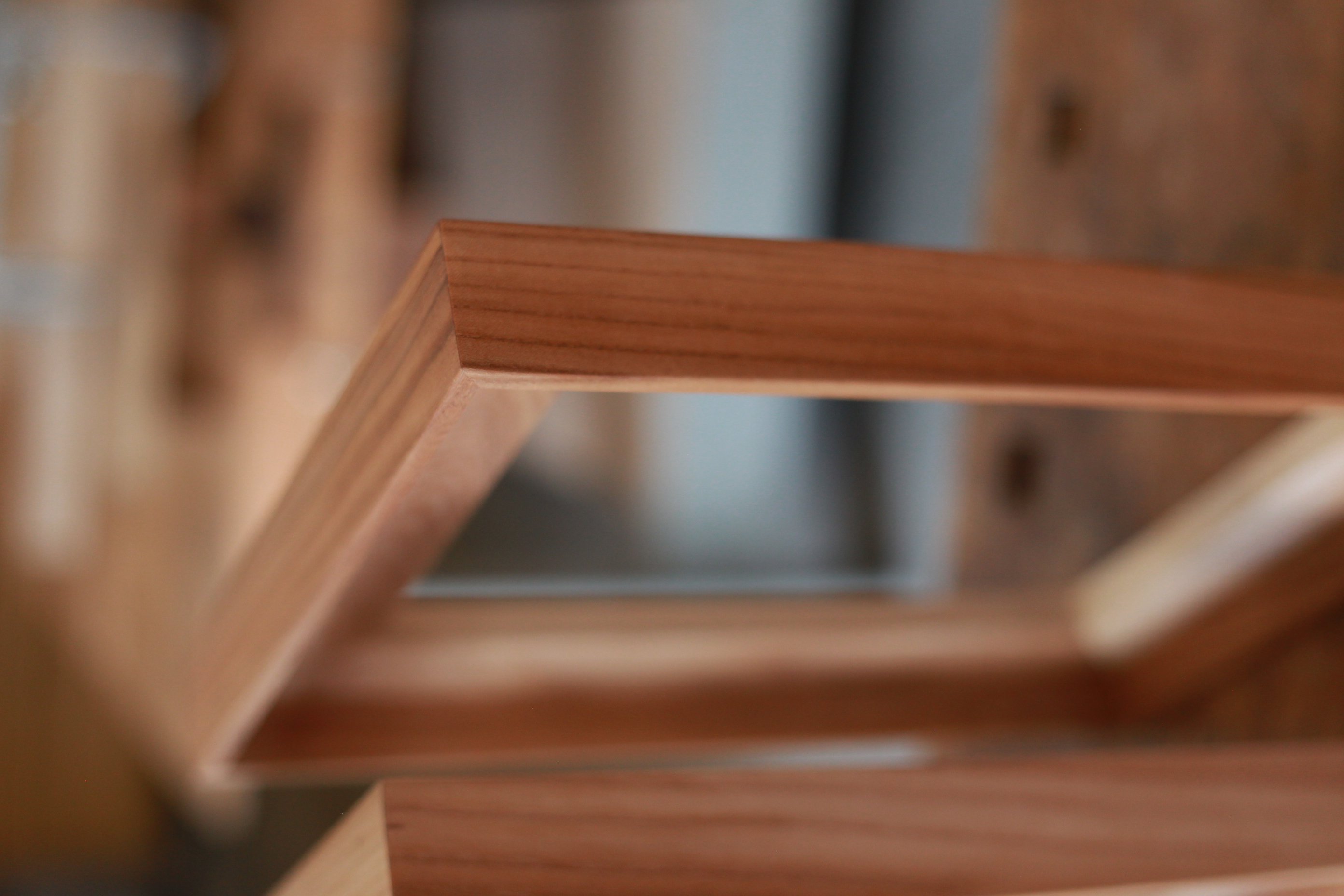 Voor een aantal gipsen kunstwerken heb ik lijsten gemaakt. Hiervoor gebruik ik kleine restjes die over zijn van andere projecten. De lijsten zijn gemaakt van eikenhout, notenhout en iepenhout. De hoeken van de lijsten zijn steeds verstevigd door een extra stukje hout in te zetten, in sommige gevallen met een contrasterende houtsoort om de houtverbinding te benadrukken.